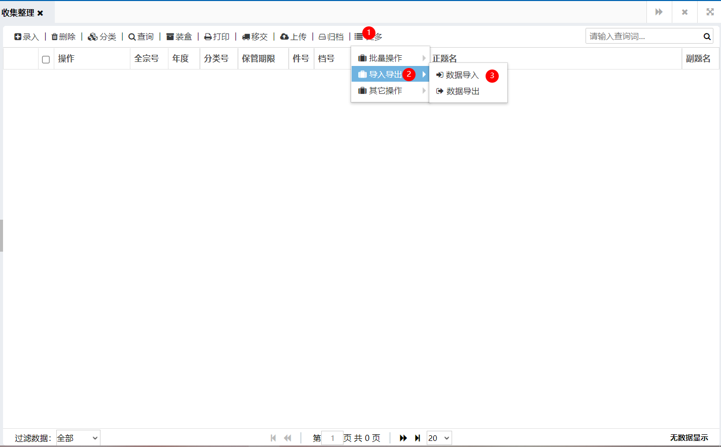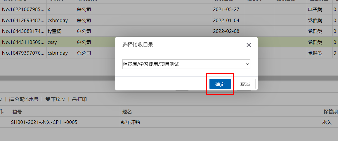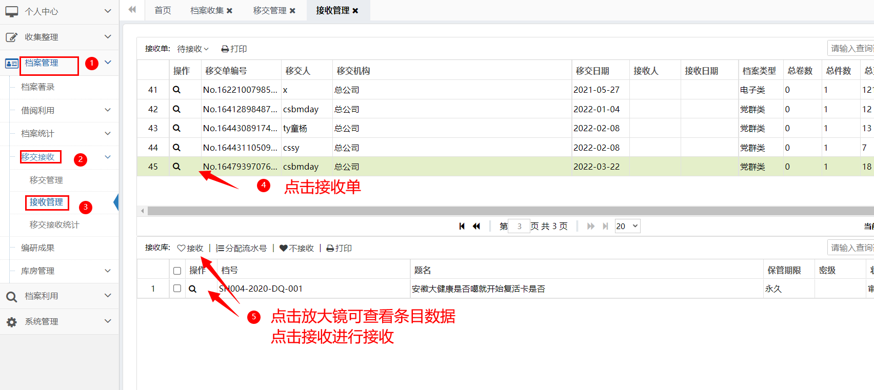 审核同意后在档案管理—移交接收—接收管理中接收数据。