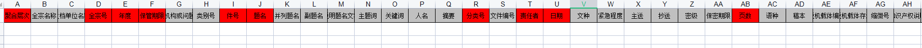 打开模板表格后红色字段为必填字段(请勿修改字段名称)避免后期数据导入字段无法对应