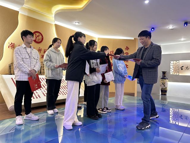 本网讯(通讯员 施晴)11月9日中午,校史馆举行“2023年度校史馆志愿讲解员”聘书颁发仪式,并为部分优秀讲解员、讲解积极分子颁发荣誉证书。图书馆、档案馆(校史馆)党总支书记、馆长彭敏,党总支副书记石虹,副馆长倪华才、刘晓静,指导老师刘俊、施晴及全体志愿讲解员参加活动。