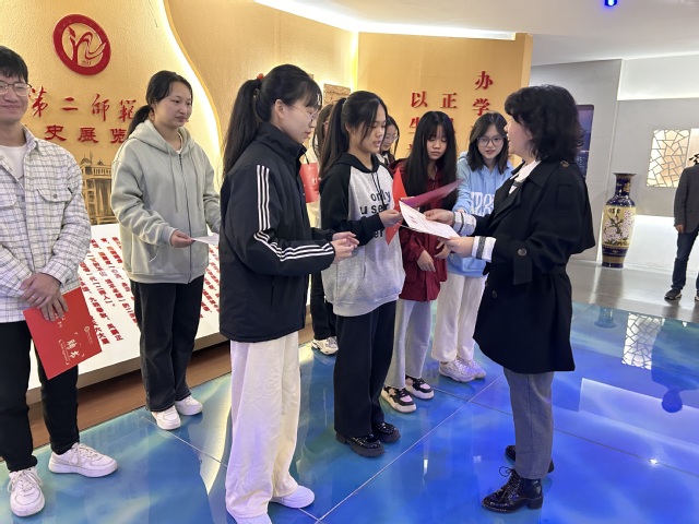 彭敏代表校史馆感谢志愿讲解员的无私奉献与真情付出,对新加入志愿讲解队的同学表示热烈欢迎,勉励大家继续发扬志愿者精神,充分利用校史馆资源了解学校历史,传播校史信息,传承校史文化,不断提升学校的社会影响力和美誉度,更好地为学校奋进新征程凝心聚力。